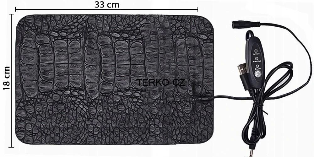 - Topná voděodolná podložka 18x33 cm s regulací 5V / 8,5W USB napájení 25-40°C