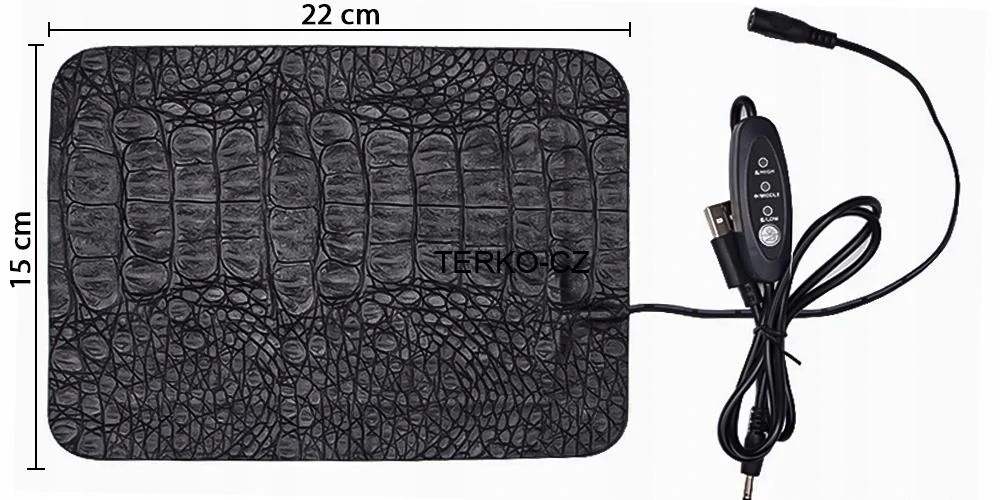 - Topná voděodolná podložka 15x22 cm s regulací 5V / 8,5W USB napájení 25-40°C